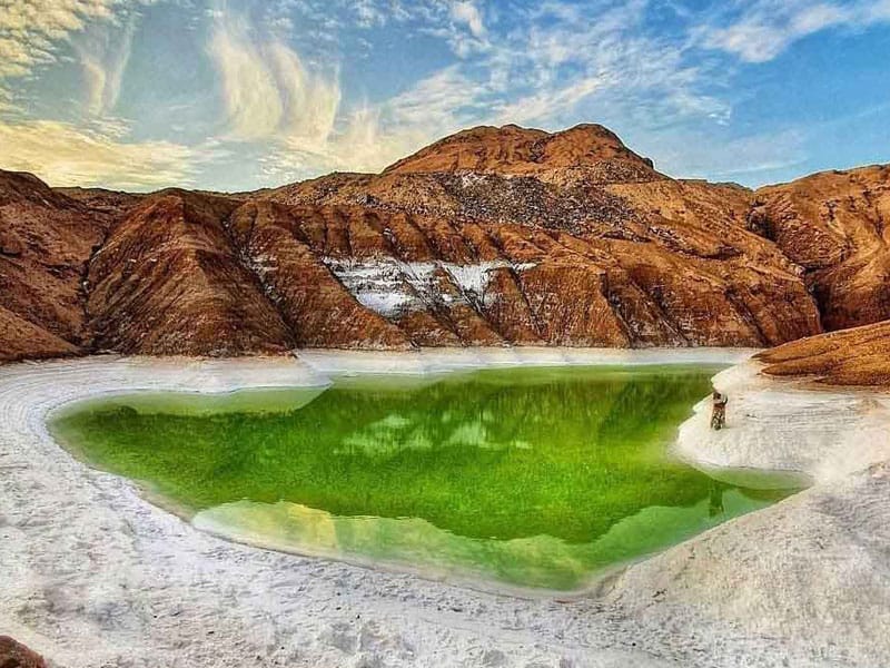انعکاس آسمان آبی در سطح بلورین دریاچه، تضاد رنگی بین نمک سفید و آب سبز حوضچه، و شکل‌های هندسی شکسته‌شده در زمین نمکی، این منطقه را به یکی از جذاب‌ترین مکان‌ها برای عکاسان طبیعت تبدیل کرده است. طلوع و غروب خورشید در کنار این مناظر، تجربه‌ای جادویی را رقم می‌زند.